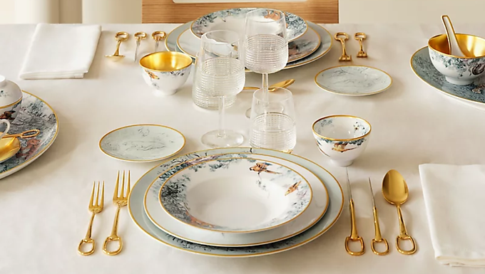 Hermès porcelain represents the epitome of luxury and artistry in fine tableware. Drawing on the prestigious heritage of the Hermès brand, renowned for its craftsmanship in leather goods, fashion, and accessories, the porcelain collection reflects the same dedication to quality and attention to detail. Each piece is meticulously crafted using the finest materials and decorated with intricate patterns that often take inspiration from Hermès' iconic motifs, such as equestrian themes, bold colors, and elegant geometric designs. This attention to detail ensures that Hermès porcelain is not only functional but also a work of art that enhances the dining experience.